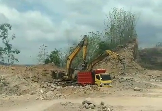 Di Lokasi Tambang Galian Desa Tiron, Kecamatan Banyakan, Kabupaten Kediri, Provinsi Jawa Timur terdapat beberapa Truk keluar masuk memuat hasil tambang