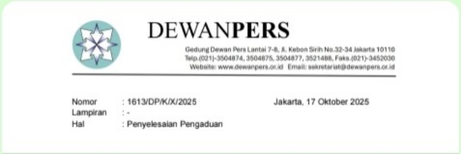 Ketua Dewan Pers Nomor : 1613/DP/K/X/2025