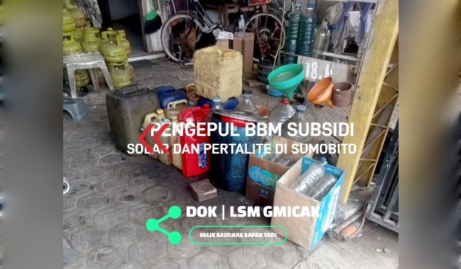 Jombang | Bertempat di Dusun Sanggrahan, Desa Segodorejo, Kecamatan Sumobito, Jombang, Jawa Timur terdapat toko dan Pengepul serta pengecer bahan bakar minyak (BBM) Subsidi jenis Solar dan Pertalite eceran. Selasa 28 Oktober 2025.